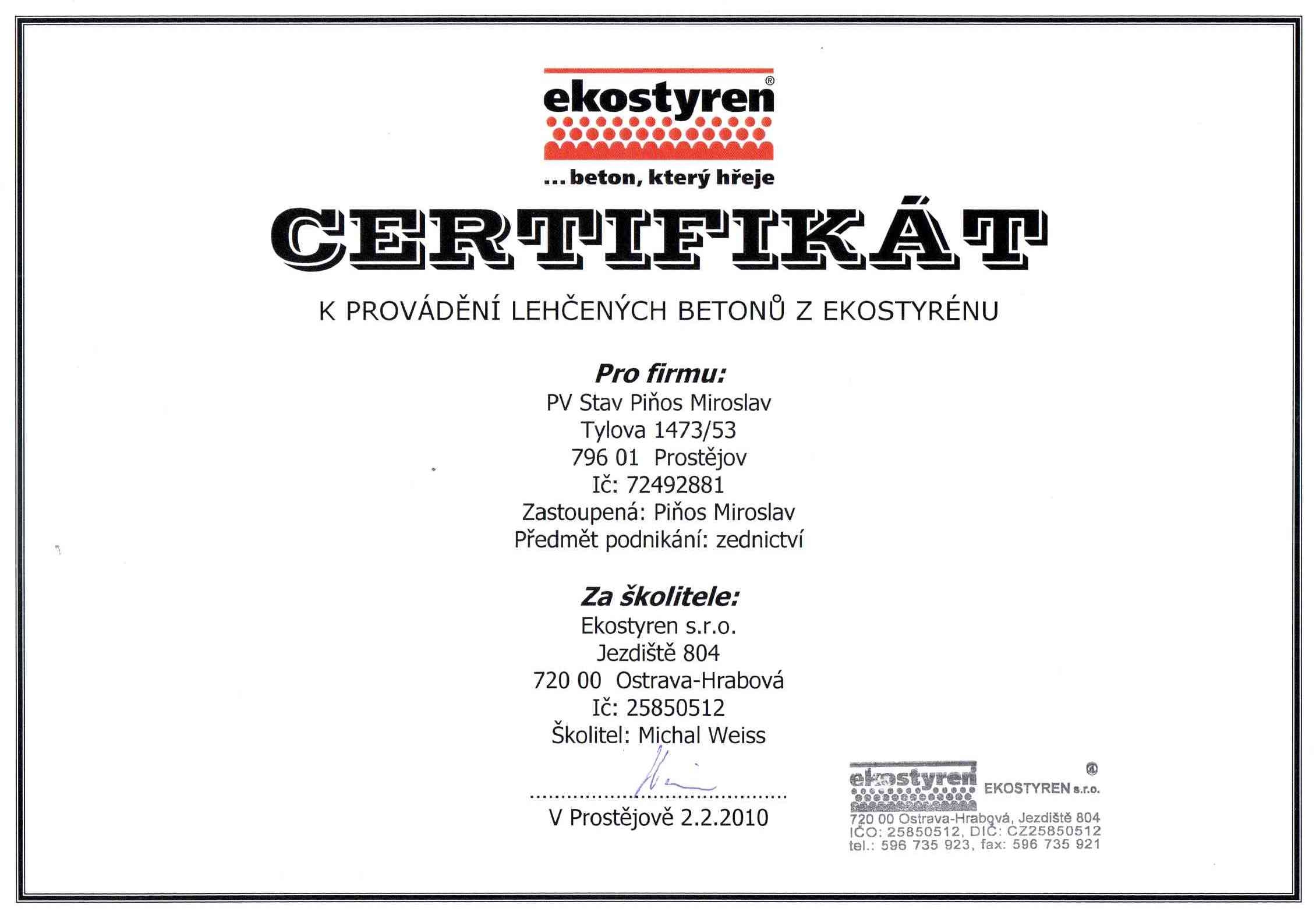 ÚVODNÍ STRANA » NAŠE REFERENCE » CERTIFIKÁTY » Certifikát pro PV stav