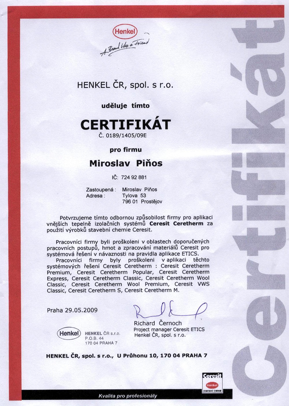CERTIFIKÁTY