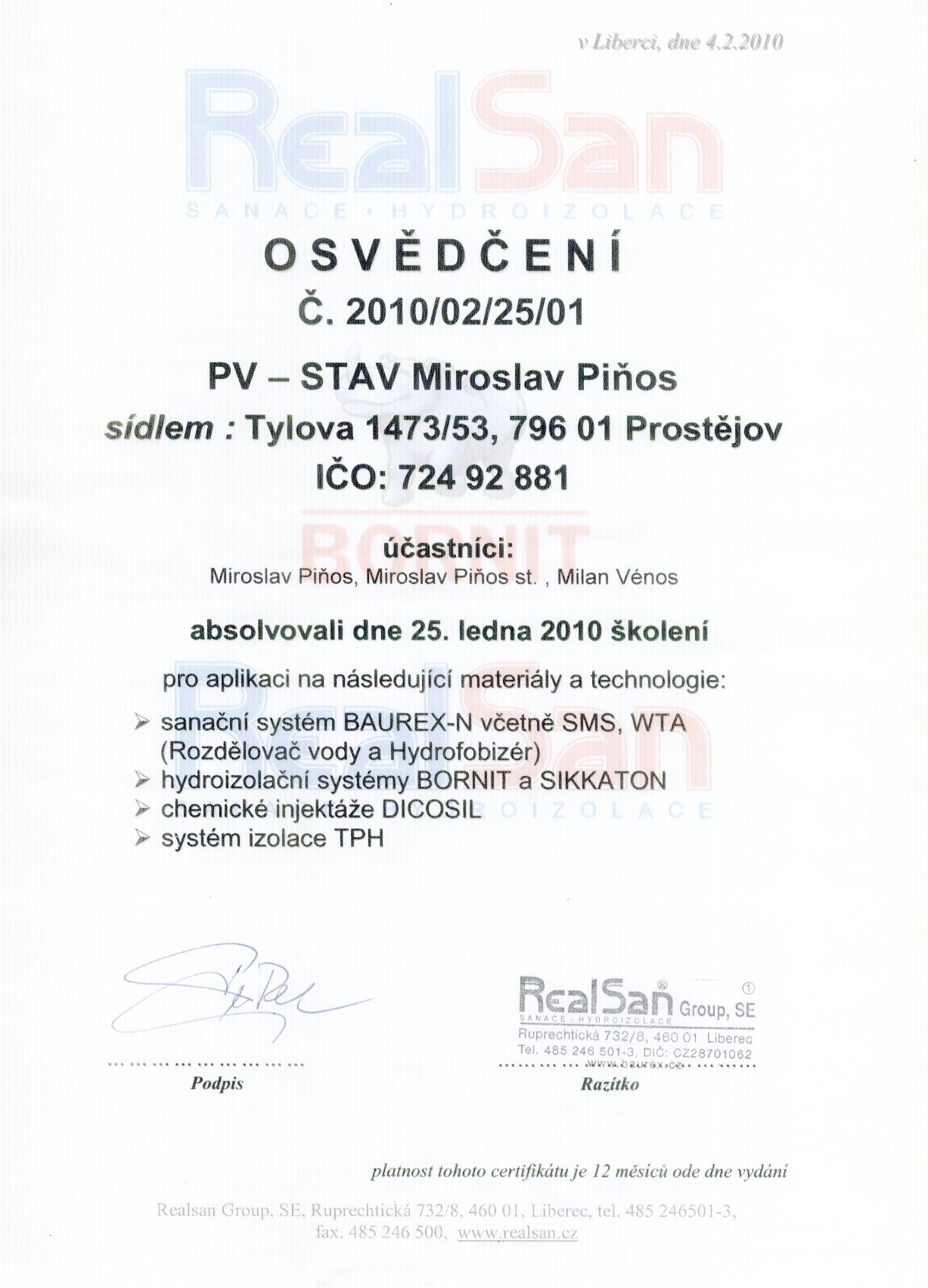 ÚVODNÍ STRANA » NAŠE REFERENCE » CERTIFIKÁTY » Real San - Osvědčení